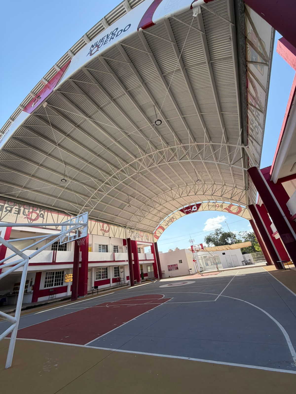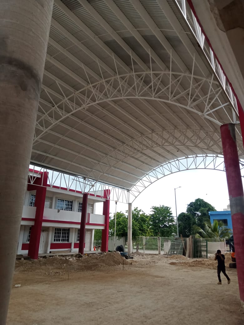El Gobierno del Estado de Quintana Roo a través de la Secretaría de Obras Públicas, se realizó la construcción de un domo en la Primaria Tulum en la localidad de Tulum, municipio de Tulum. METAS PRIMARIA TULUM. CANTIDAD: 510 UNIDAD: m2 CONCEPTO: Construcción de un domo Construcción de un domo que consistió en: • Cimentación (A base de concreto armado premezclado, zapatas, dados, columnas de concreto armado con anclaje y montaje de marcos con vigas de alma abierta, polines monten y contravientos). • Cubierta (A base de lámina Zintro-Alum, faldón y lona). • Bajantes pluviales. • Acabados en pintura vinílica y esmalte en domo y cancha. • Instalación de luminarias tipo campana. • Instalación de canastas y tableros de Básquet Ball. • El domo beneficiará directamente a: 362 alumnos. -Mujeres: 238 -Hombres: 251