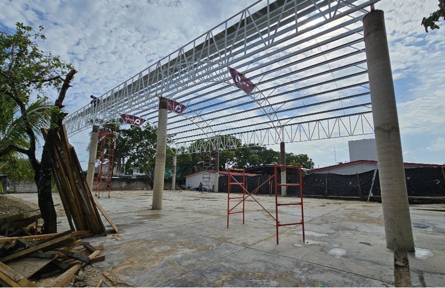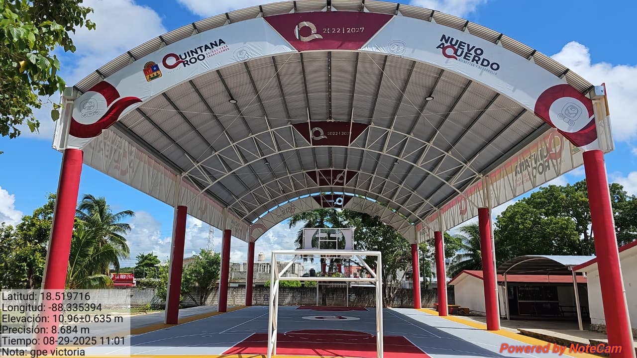 El Gobierno del Estado de Quintana Roo a través de la Secretaría de Obras Públicas, en coordinación con el Instituto de Infraestructura Física Educativa realizaron la construcción de un domo en la Escuela Primaria Guadalupe Victoria. ----------------------------------------------METAS---------------------------------------------- DESCRIPCIÓN: Construcción de domo CANTIDAD: 510 UNIDAD: M2 Construcción de un domo que consiste en: • Cimentación a base de concreto armado premezclado, zapatas, dados, columnas de concreto armado con anclaje y montaje de marcos con vigas de alma abierta, polines monten y contravientos. • Cubierta a base de lámina Zintro-Alum, faldón y lona. • Bajantes pluviales interconectadas a registros de captación pluvial. • Acabados en pintura de esmalte en todo el domo y cancha. • Instalación de luminarias tipo campana. • Instalación de canastas y tableros de Básquet Ball. Monto de inversión: $3,316,972.96 proveniente del Fondo de Aportaciones para el Fortalecimiento de las Entidades Federativas (FAFEF 2025) Beneficiando a un total de 250 alumnos, de los cuales: Hombres: 130 Mujeres: 120